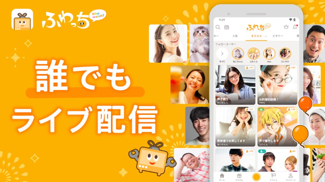 ふわっちは、スマホ1台で配信を始めやすいライブ配信アプリです。複雑な機材をそろえなくてもスタートしやすく、まずは気軽に配信を試したい人に向いています。公式ストアでも、その手軽さが大きな魅力として打ち出されています。